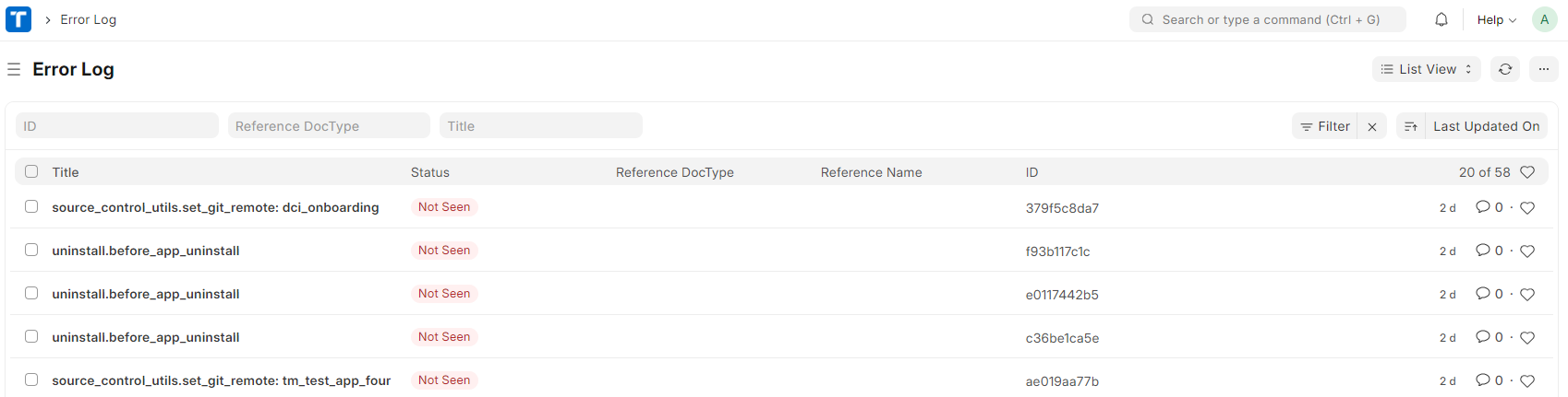Error Log will contain all system generated errors as well as any user generated users in server-side python scripts where frappe.log_error(...) is used.